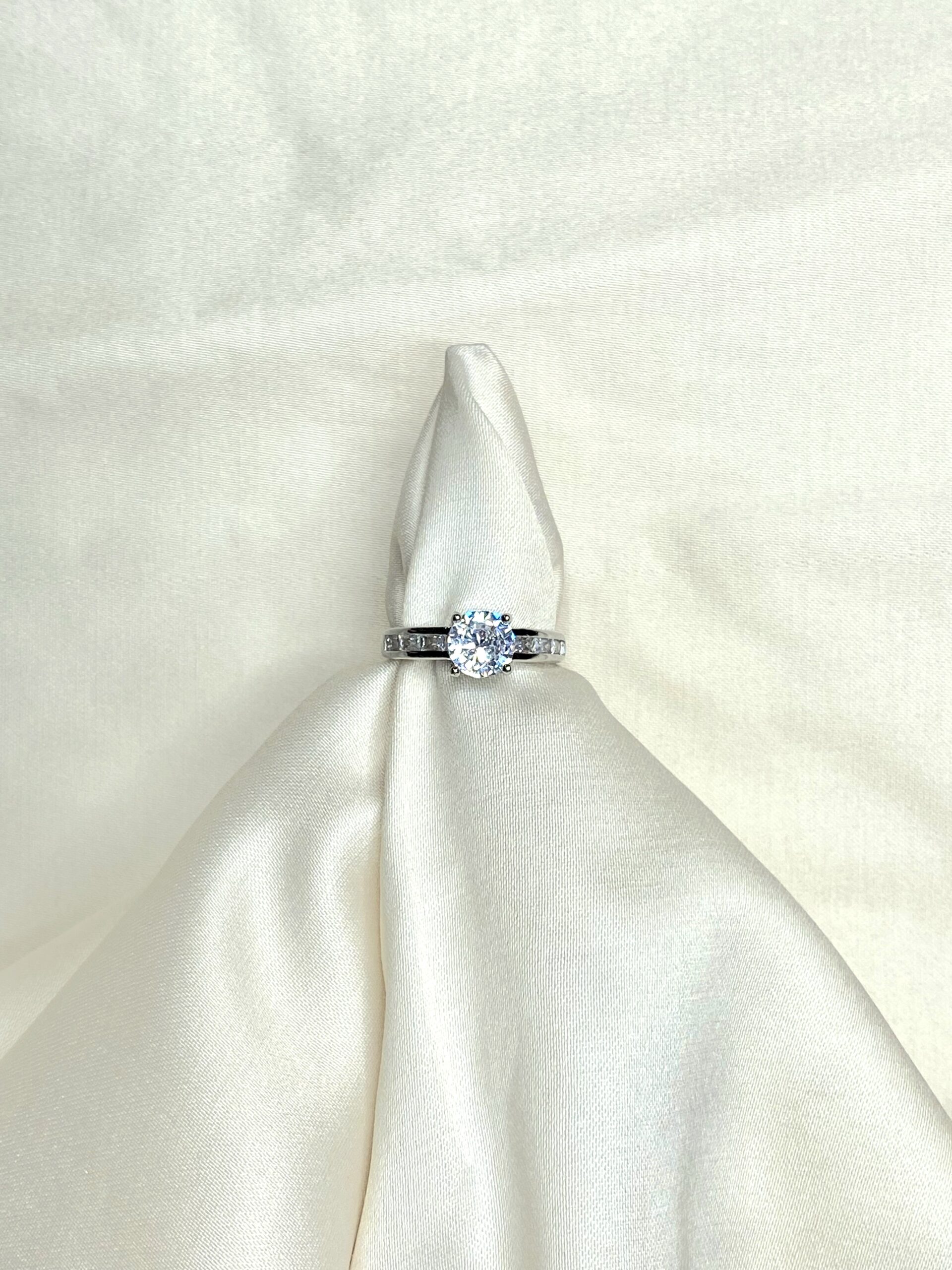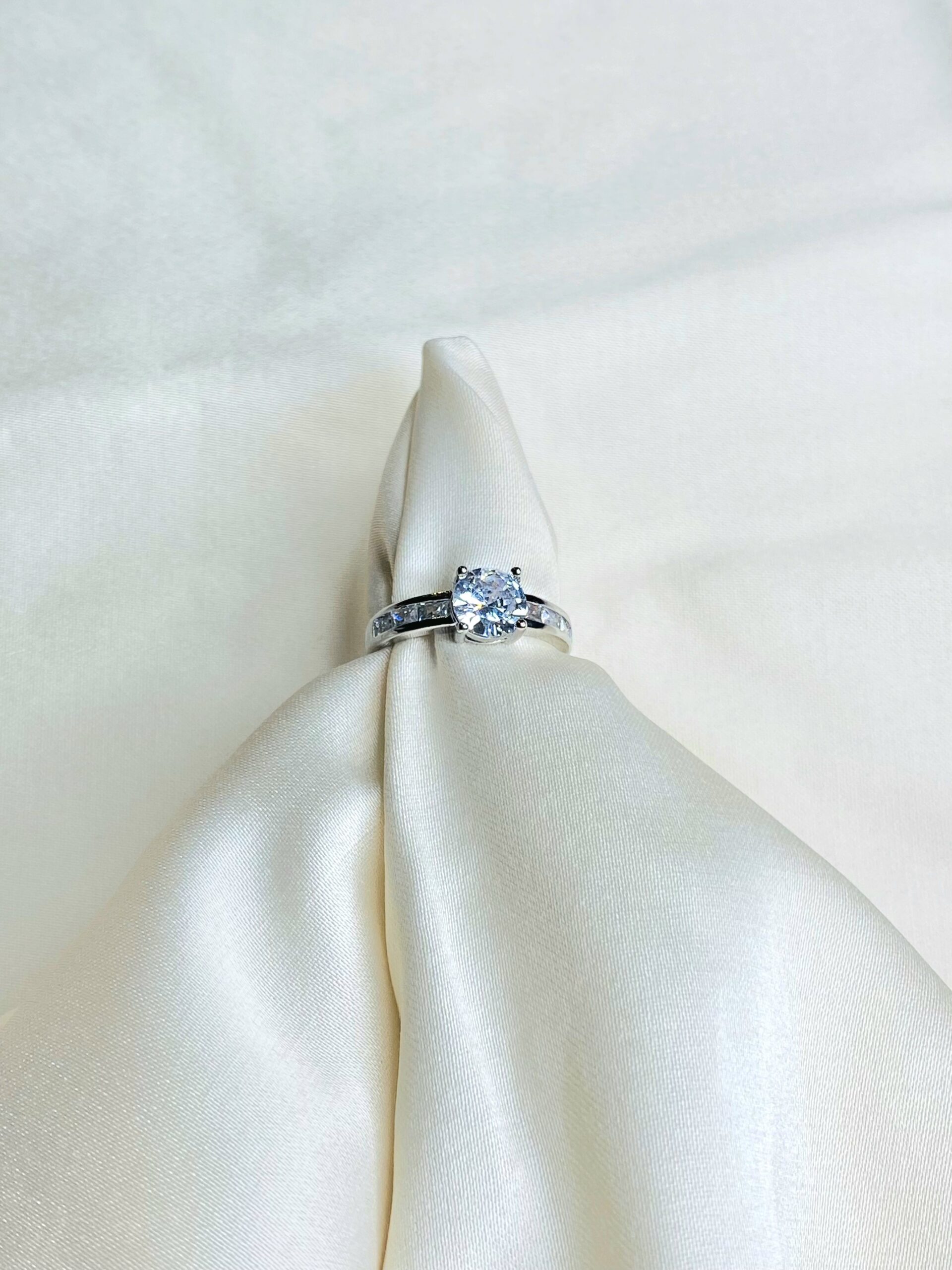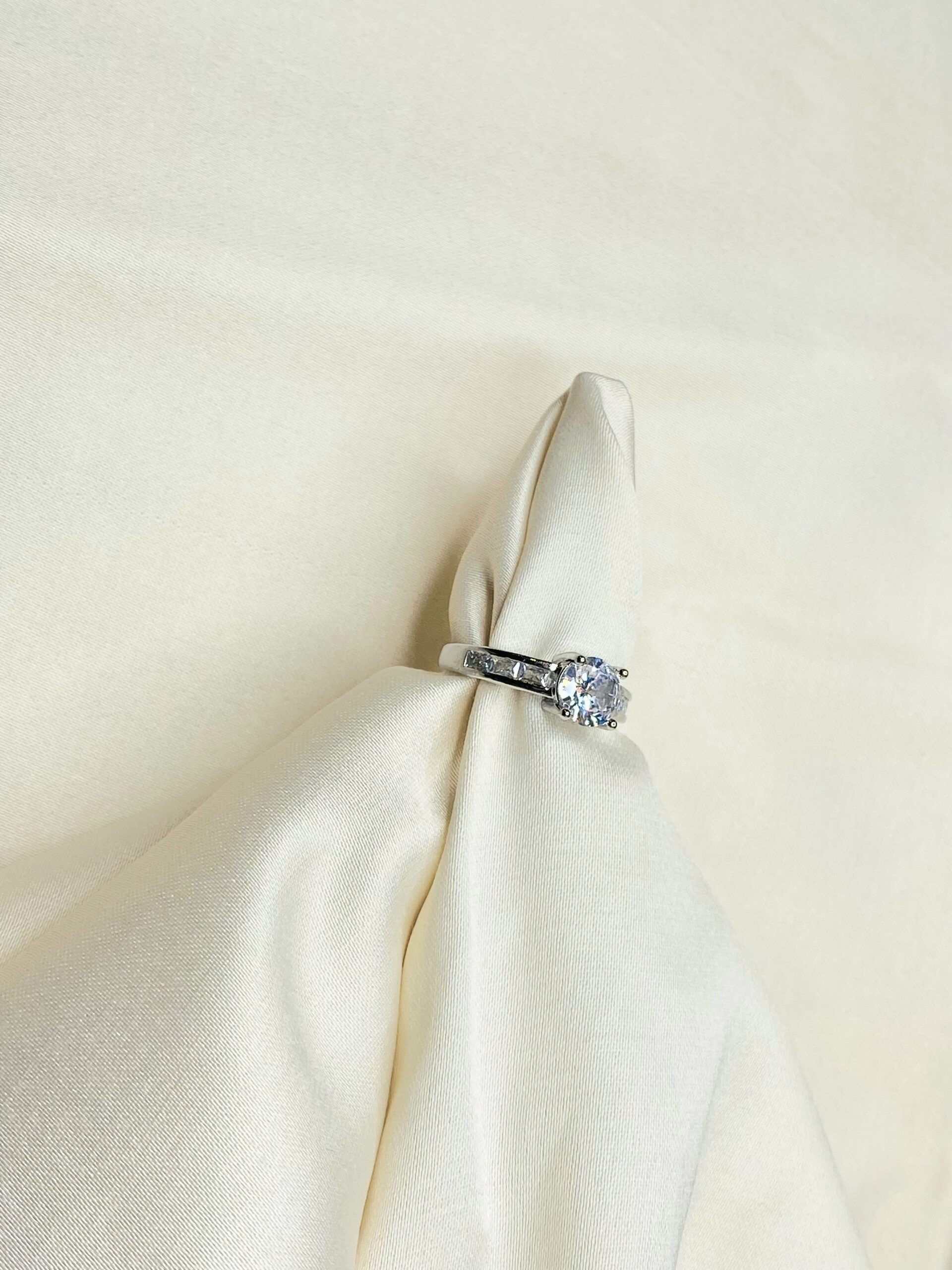 Silver plated imitation solitaire ring.